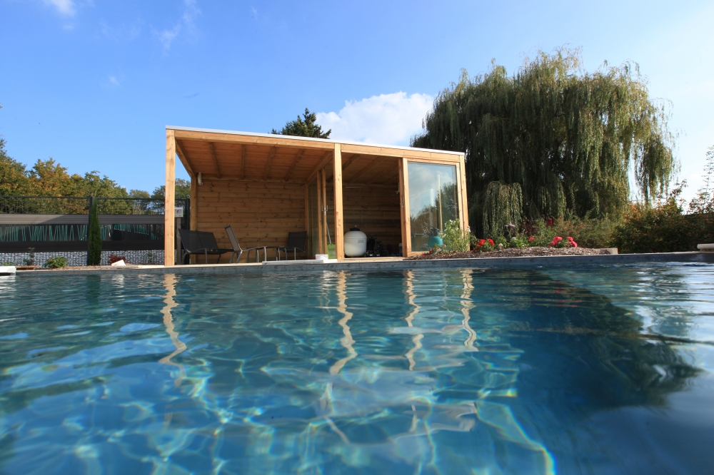 Chez Hydrobulles, nous concevons des pool houses sur mesure, adaptés à vos besoins : local technique, espace détente, cuisine d’été, douche, sanitaires ou vestiaire.